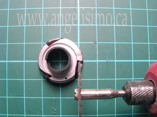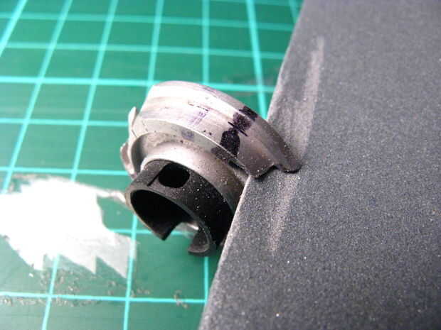 Si la pieza se calienta bastante, la tubería plástica de interior parece encoger un poco, tan pronto como consiga flojo quitarlo para evitar más que encoge, recuerde que tiene que girar libremente en el eje de metal cuando ponen detrás juntos. (Mina mal se atascó tan pronto como consiguió en el eje. Tuve que papel de lija el interior de la tubería plástica hasta girar libremente otra vez.)