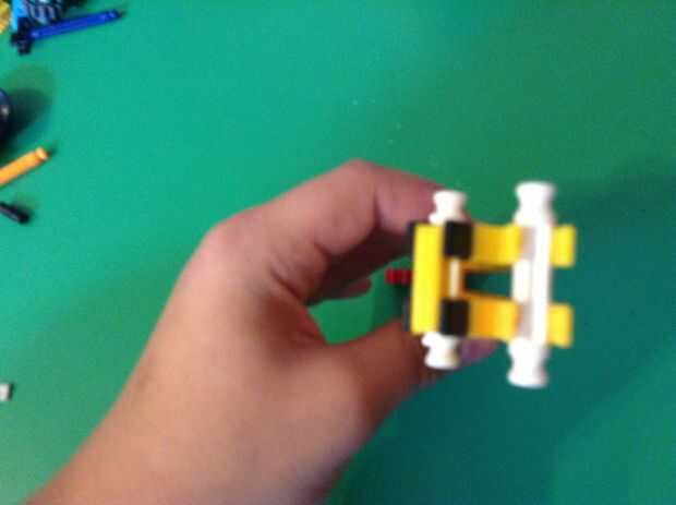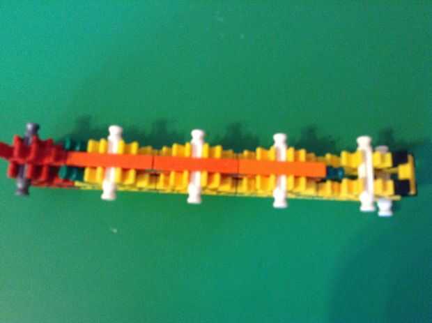 Hi i made this k'nex bulldozer , which has steering and a digging scoop. También tiene unas escaleras ubicadas en la parte trasera del vehículo. El manejo posterior es una gran idea porque ayuda a la topadora manejar mejor que un coche alrededor de l