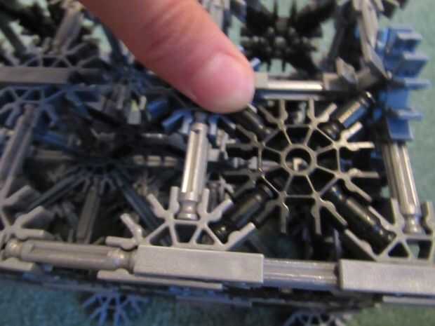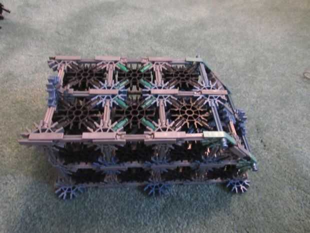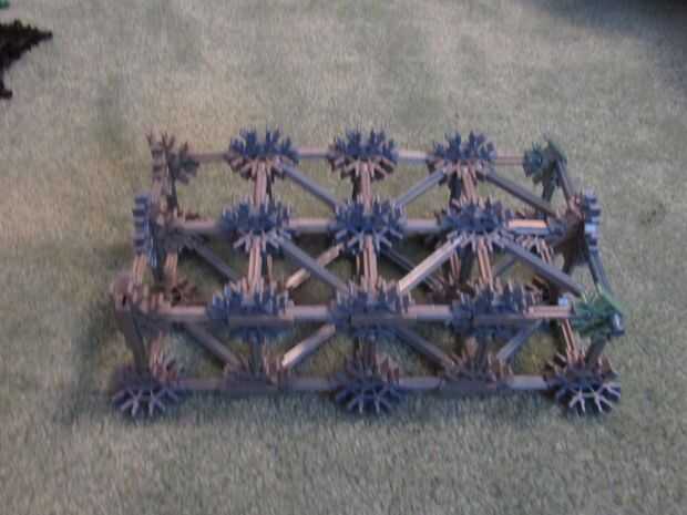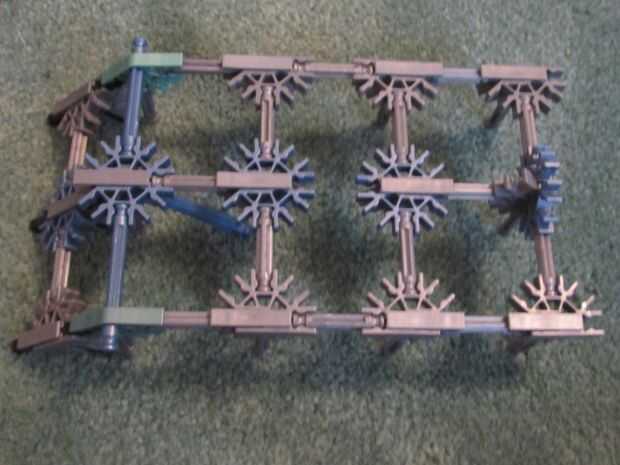 Hi i made this k'nex bulldozer , which has steering and a digging scoop. También tiene unas escaleras ubicadas en la parte trasera del vehículo. El manejo posterior es una gran idea porque ayuda a la topadora manejar mejor que un coche alrededor de l