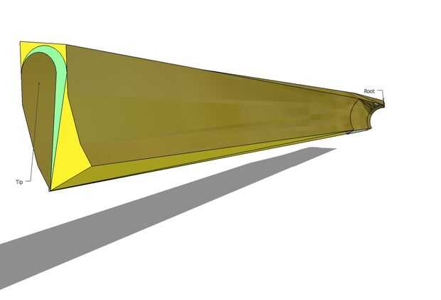 Los consejos pueden ser un poco más delgados. Creo que hará girar más rápidamente si los extremos son más ligeros y tienen menos resistencia cuando son más delgadas. También notará que su ángulo de ataque es diferente en la punta que en la base.