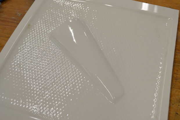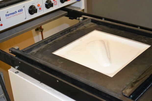 El molde se coloca en el vacío formado. Se elige el grosor deseado de plástico, calienta, y formó la forma.