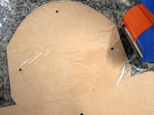 Para evitar el estiramiento y distorsión palo cinta adhesiva al lado carne del cuero.