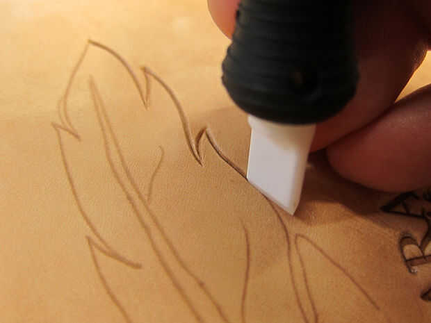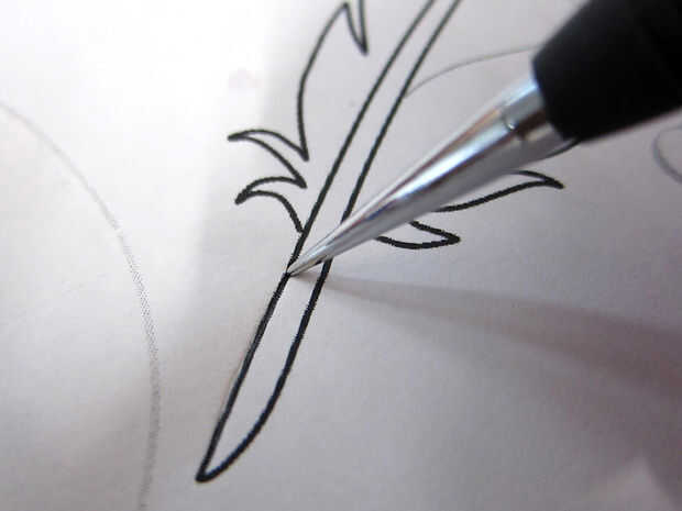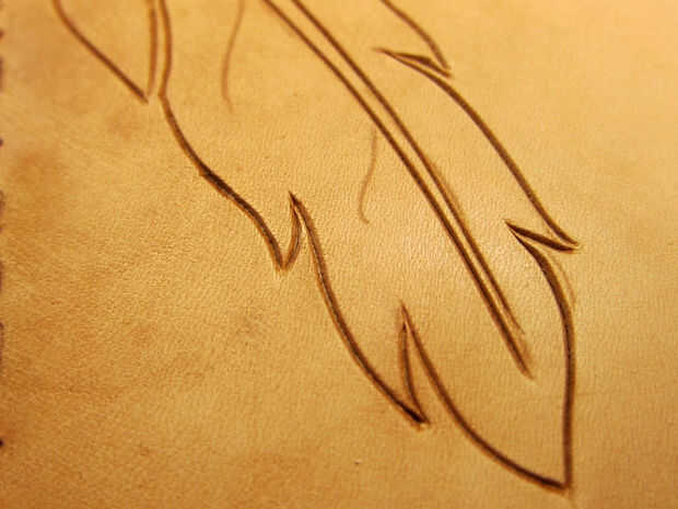 Coloque el patrón sobre cuero y traza la pluma usando una aguja (o un lápiz).
