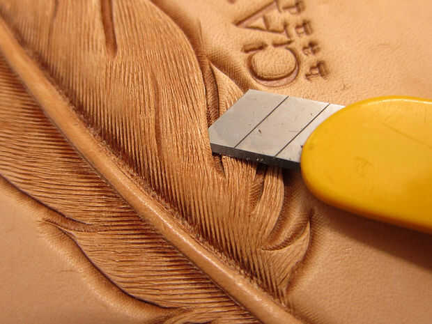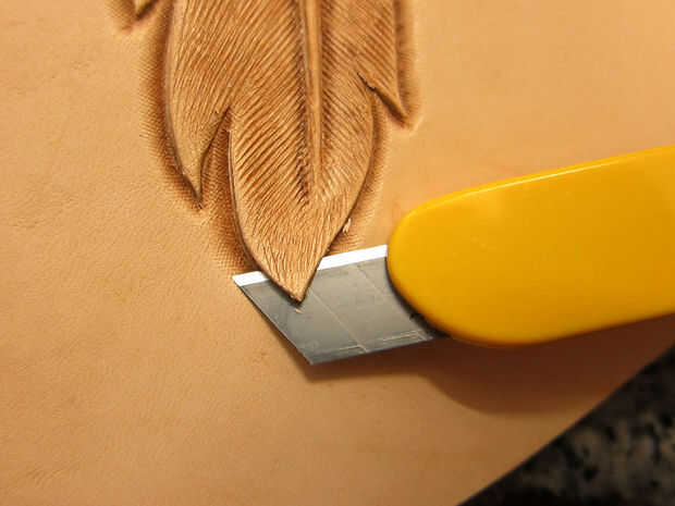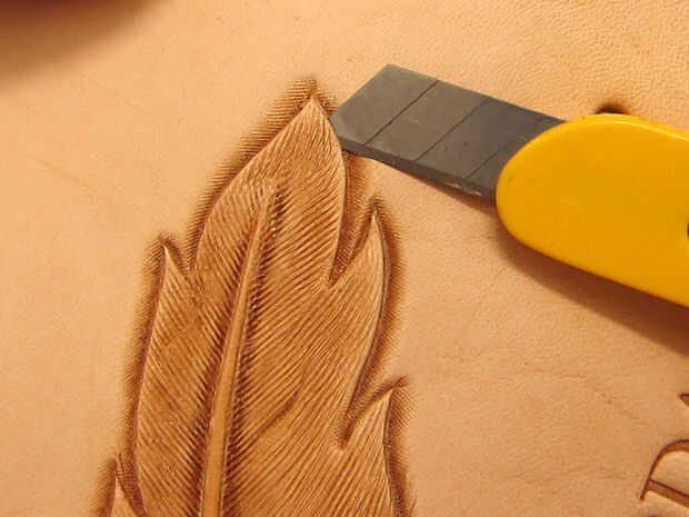 Use el mismo bisturí para realizar pequeños cortes en bordes levantados por lo que se parecen a plumas reales. Seguir en dirección a "pelo".