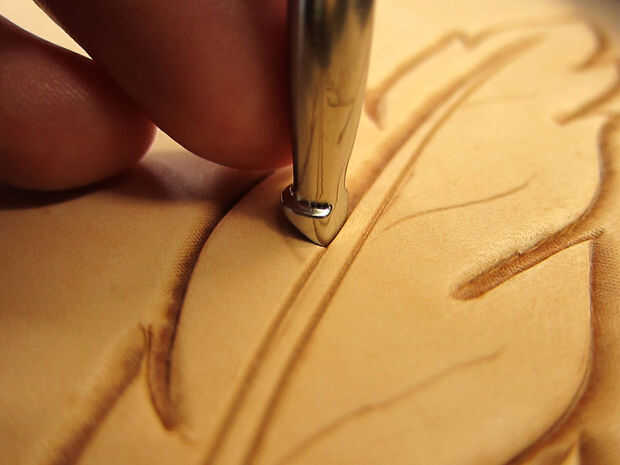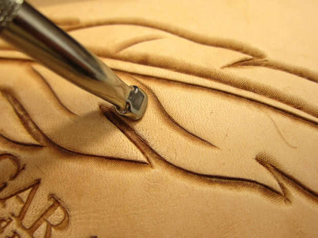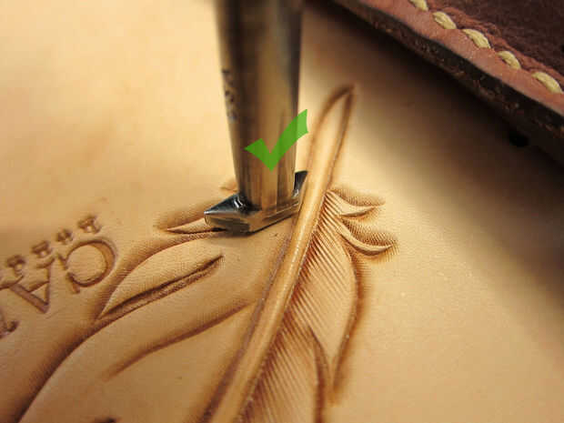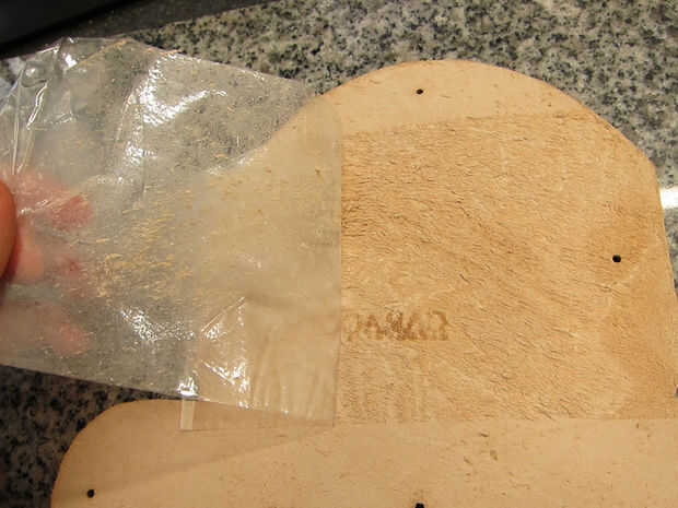 Si la piel está muy seca por ahora utilizar aerosol para añadir algo de humedad y cuando vuelve color claro otra vez estampar el fondo cuidadosamente bajo los bordes levantados (véase las fotos).