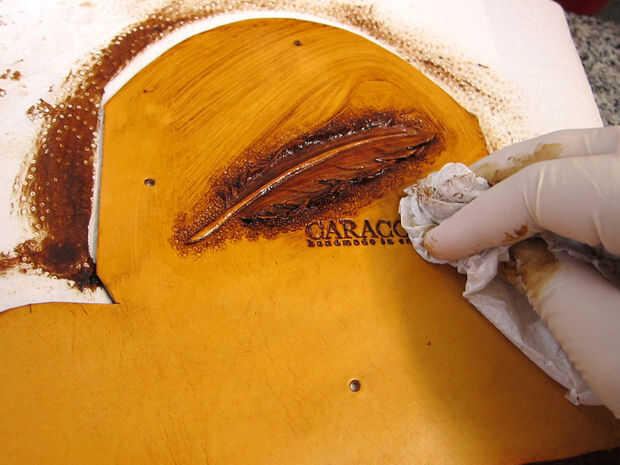 Aplicar acabado cuero, cualquiera va a hacer. Una vez más, dejar que se seque.