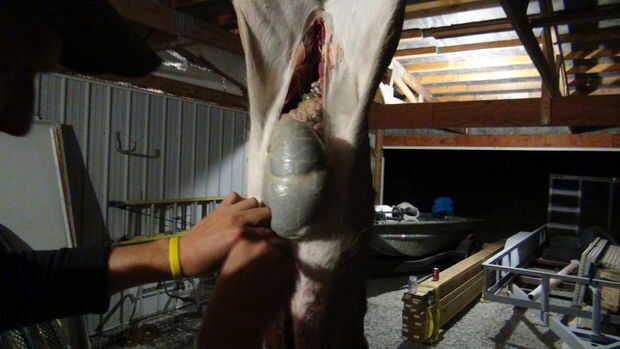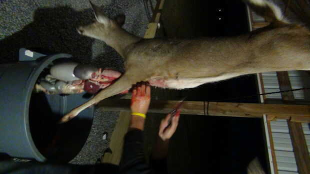 -Use su cuchillo y sus manos y tire de las vísceras y órganos vitales de los ciervos. Todo debe ser eliminado, así que ser muy cuidadoso en este paso.