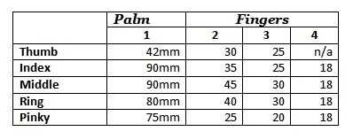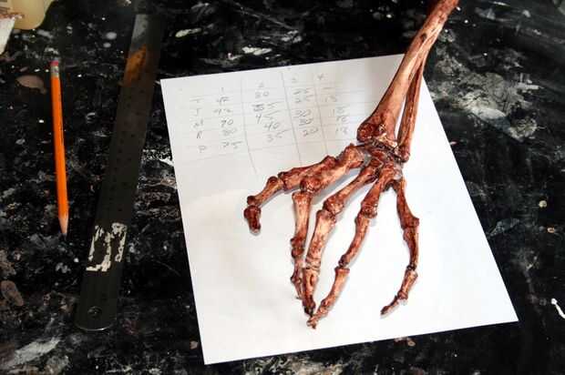 Lo primero que hay que hacer es averiguar cuánto tiempo los huesos del dedo va a necesitar ser. Así llego a tener un esqueleto Bucky a mano (si no sabes lo que Bucky es, ¿realmente estás en Halloween? Sólo pide) mide cada hueso y me hicieron una cuadrícula. Ya quisiera usted y veo que tienes potencial, que he proporcionado mis medidas ya (cada unidad es en milímetros).