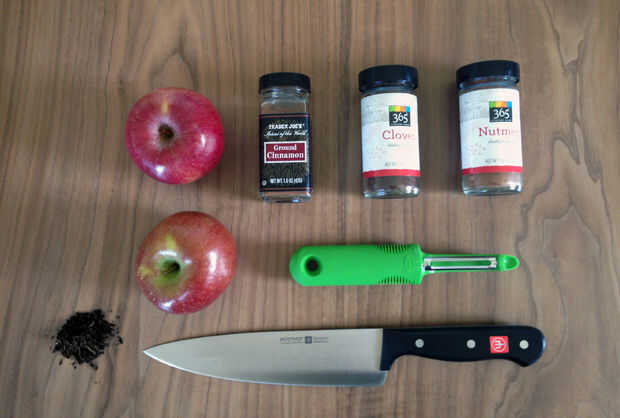 2. especias. Yo uso canela molida, nuez moscada y clavo de olor. También puede usar clavo de olor entero y palitos de canela y tal vez una vaina de cardamomo.