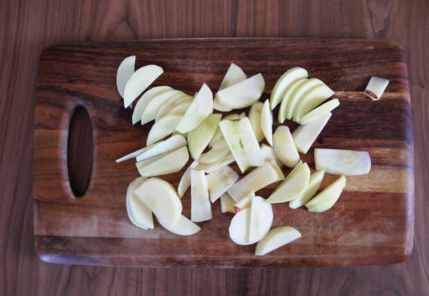 canela y azúcar las manzanas son muy fáciles de hacer y son una golosina deliciosa para todos.Cuatro ingredientes se necesitan para esta receta:-Manzanas-Canela-Azúcar blanco-LimónPaso 1: cortar Corte la manzana en trozos que son alrededor de 1 pulga