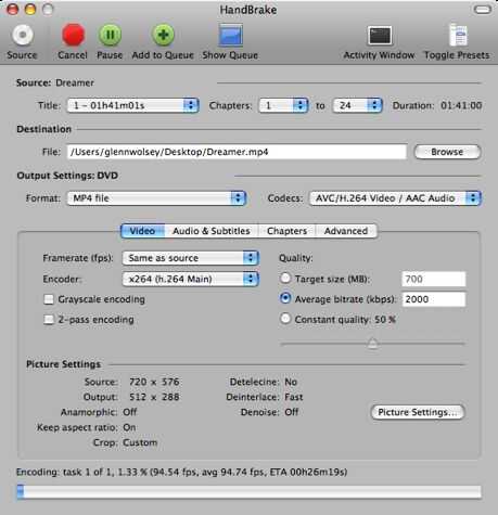 Freno de mano es una aplicación que transfiere el audio y el video de un DVD a tu ordenador, convirtiéndolo en un formato designado (mp4 para iPods).