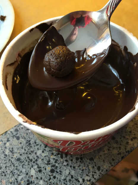Tomar las bolas de Oreo de la nevera y coger cada bola y colocar en el chocolate derretido. Rodar la pelota en el chocolate para asegurarse de que obtiene un montón de espeso chocolate delicioso!