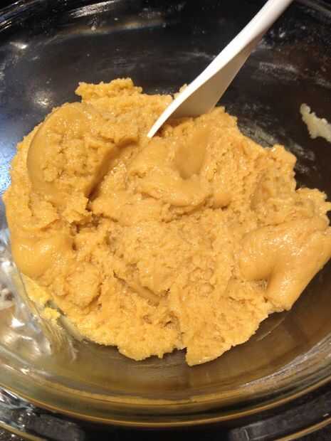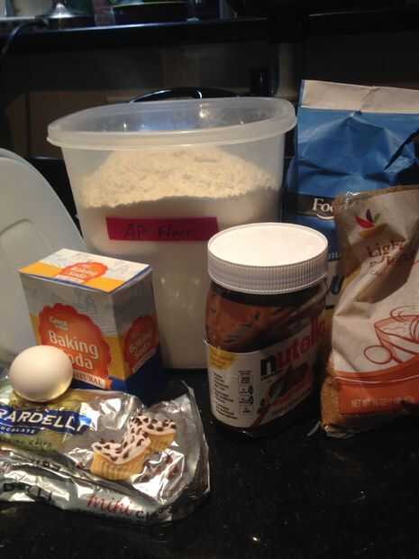 6. microondas Nutella en un recipiente de microondas seguro durante 15-20 segundos y luego verter en la masa.