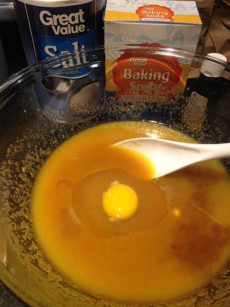 3. agregar vainilla, huevo, sal y bicarbonato de soda y revolver.