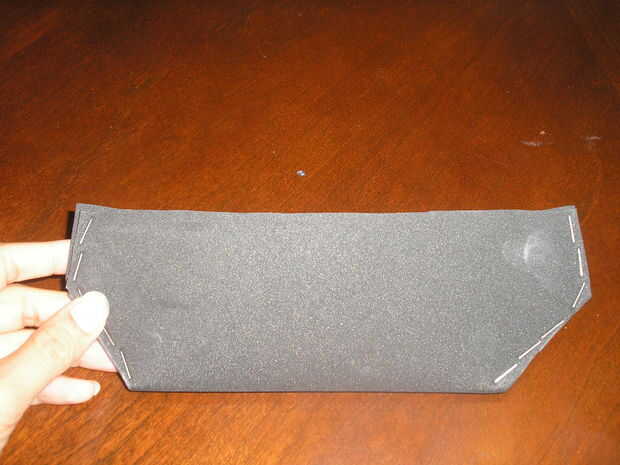1. doblar un rectángulo por la mitad. Marque con tiza donde usted cortará. Puede que tenga que jugar con esto, pero en mis naves corte un triángulo con ambas piernas, mide aproximadamente 1 pulgada. Recomiendo hacer uno, probando y luego usarlo como su plantilla.