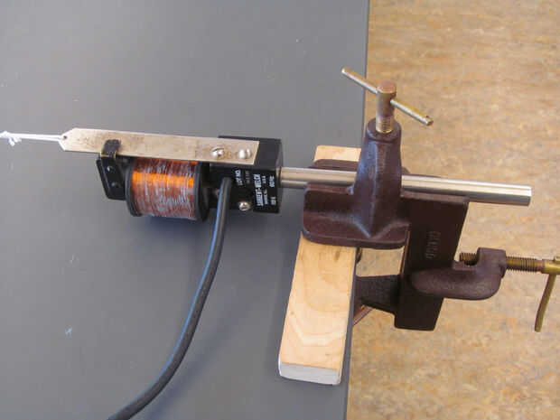 Use un bloque de madera como un espaciador para que el vibrador no toque la mesa.
