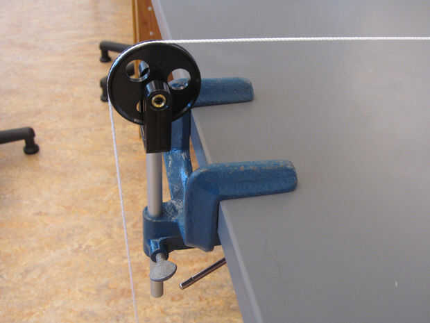 tabla. Tenga en cuenta que si conecta el vibrador y la polea en una esquina (en vez de toda la tabla como lo hice), puede ajustar la longitud de la cuerda moviendo la polea o vibrador.
