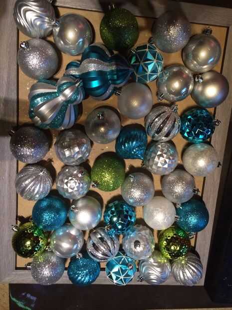 he utilizado una gran variedad de ornamentos inastillables. No tienen que ser ajustados, se rellena el espacio más adelante. Pegamento caliente los ornamentos para el respaldo de la estructura. He puesto los adornos para que la parte superior (suspensión de plata) se enfrenta en diferentes direcciones para agregar al efecto visual.