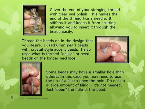 No tienes que cortar cualquier longitud de la cadena. Tome el extremo y la inmersión en el pulimento de clavo claro y dejar para secar. Esto hará que el extremo del hilo rígido como una aguja. No necesita comprar agujas encordadas a menos que desee. Pero recuerda, mediante una aguja que va doblando el hilo sobre. Esto significará que usted tendrá un doble espesor pasando por el talón.