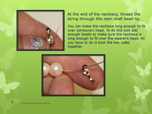 Si se desean hacer este collar sin un cierre, sólo mantener ensartar perlas de 6mm hasta llegar a la longitud que usted necesita. Entonces sólo "nudo de Plaza de" los dos extremos juntos. Siempre aplique el pulimento de clavo claro un poco para sellar el nudo.