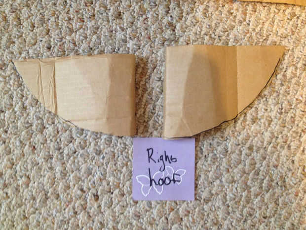 Cascos están un semicírculo que corte por la mitad; Doblado 1/2 una pulgada hacia adentro. Sí, se supone que uno debe para ser más grande que la otra para dar la apariencia de pezuña de hendidas del Toro. Porque signo de Tavros, Taurus, se basa en un toro...