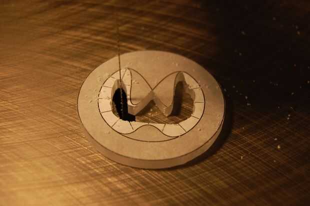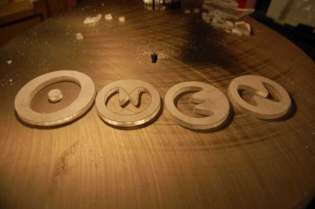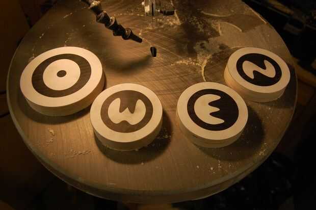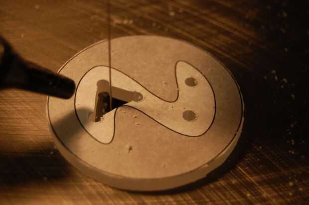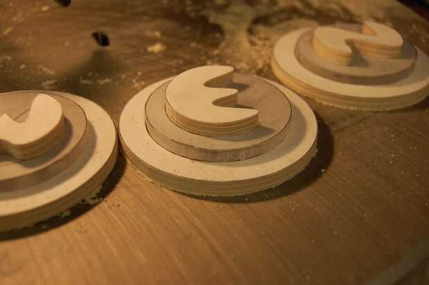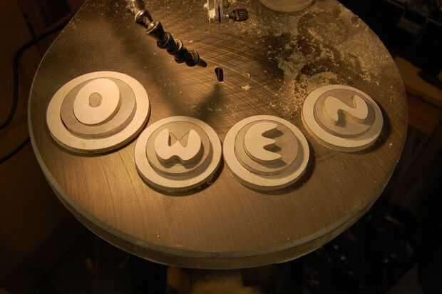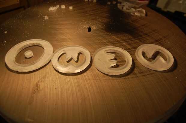 -Corte el bisel y la letra correspondiente de la misma pieza de madera. Perfore un orificio piloto cortar primero el bisel y corte la letra dentro. Cortar la letra tan exactamente como sea posible, para que quede solamente un rastro de la línea. También puede optar por cortar la letra sobredimensionada y arena a la línea, pero esto es una pérdida de tiempo si puede evitarlo.