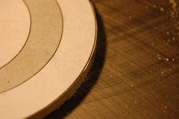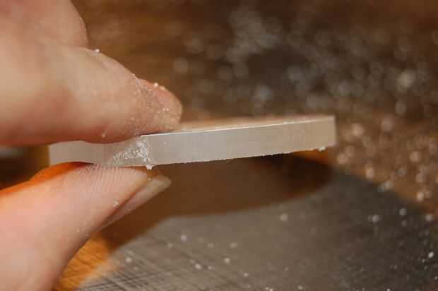 -cortar el borde exterior de la luneta de gran tamaño que puede pulirse "a"la línea. Corte el borde interior "a la línea," con la mayor precisión posible. Deje el patrón en el bisel hasta después de que se ha pegado a la consola y arena.