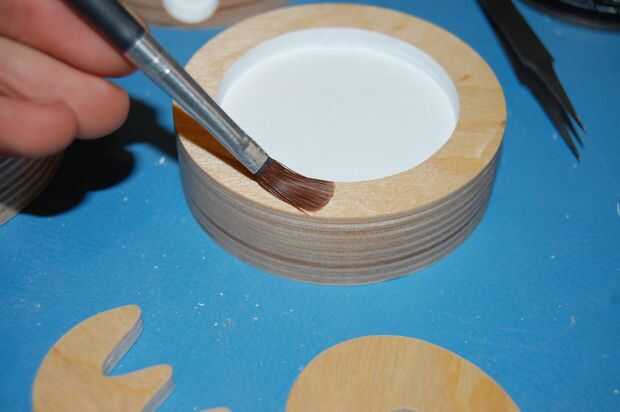 Para aumentar el brillo de la pintura brilla en la oscuridad, pintar todo el "dentro de las superficies" con pintura blanca. Esto incluye el área ahuecada de la parte superior de cada pod, hasta el bisel, y los agujeros perforan para las barras de acrílico.
