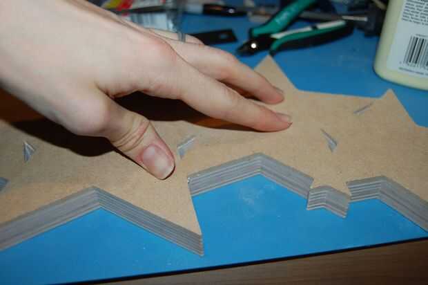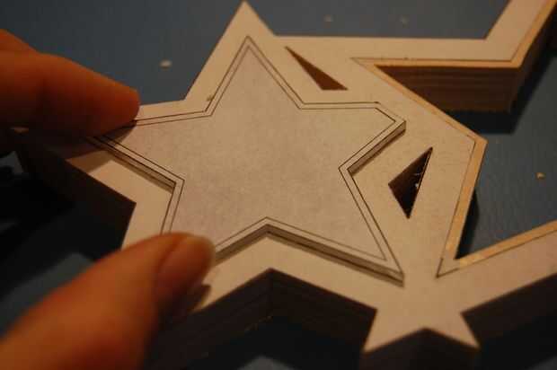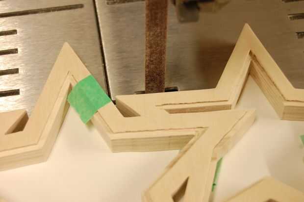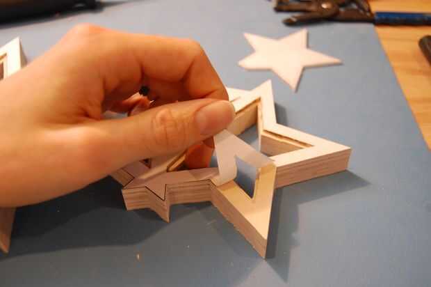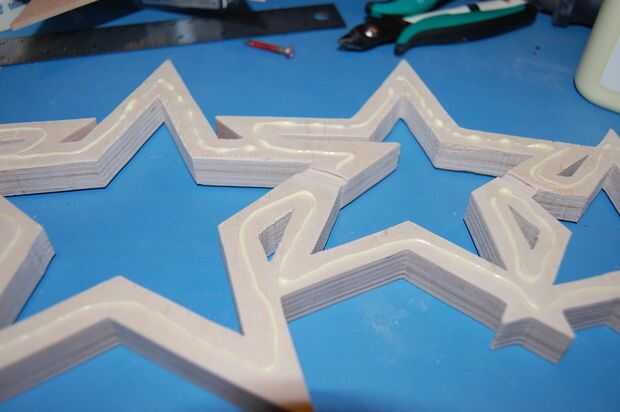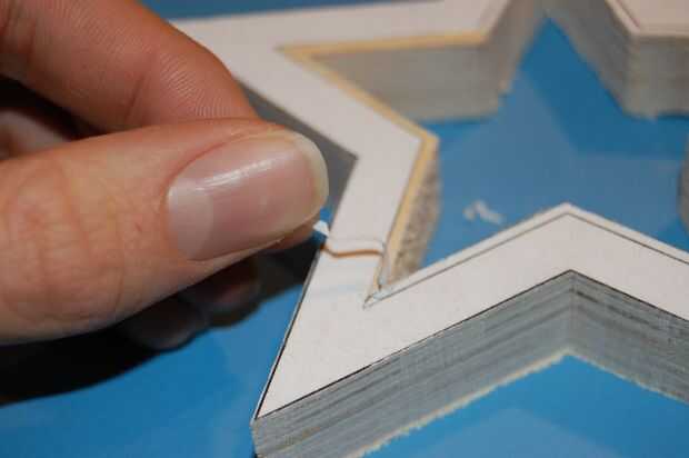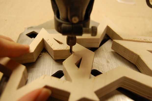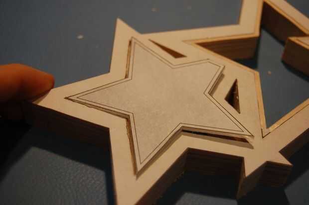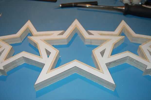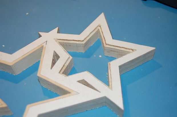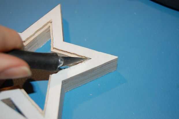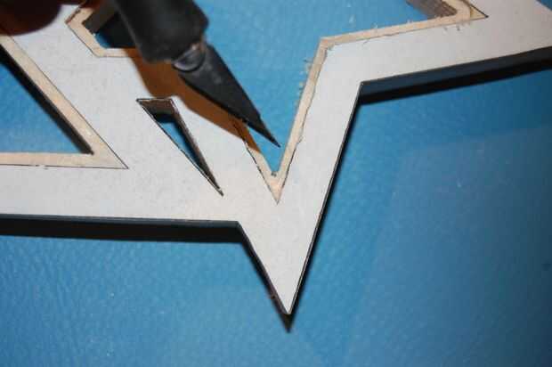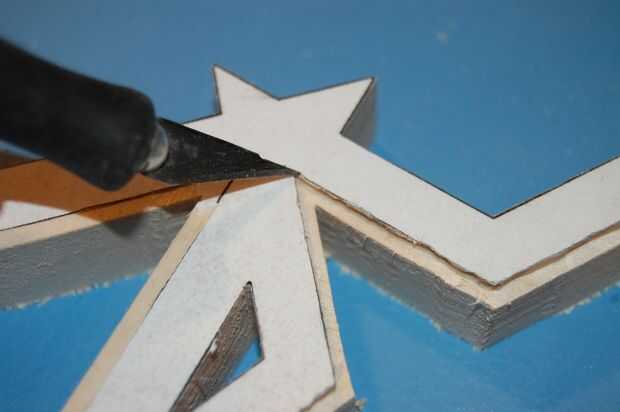 Los cables de los LEDs necesitan pasar entre las estrellas. En la parte posterior de las estrellas, cortar un canal entre cada estrella con la Dremel, en un método similar para cortar los bordes.