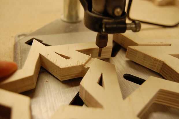 Configurar el Dremel con un router de 1/8 bits. Monte la Dremel en el soporte de taladro, para que la broca corta aproximadamente 1/16 de pulgada en la madera. La Dremel es sólo lo suficientemente potente como para que corte ahora; debe hacerse en dos pasos.