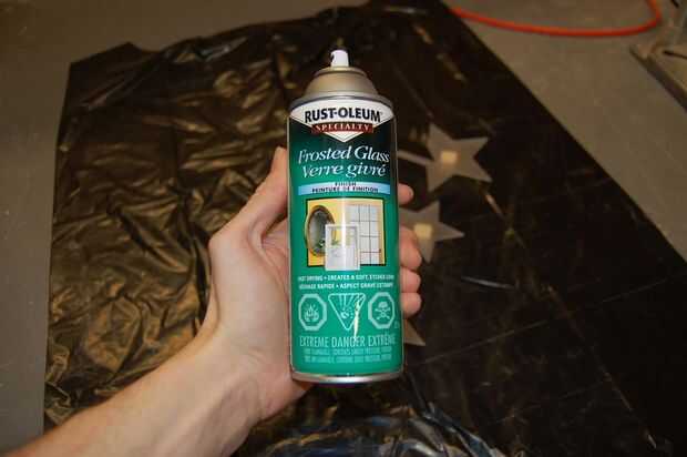 Para el vidrio de la helada, usé Rustoleum "Vidrio esmerilado" pintura en aerosol. Esto es totalmente innecesario; lijar el plástico funcionará igual de bien. Cualquier método que utilice, asegúrese de que usted aerosol arena la parte inferior del plástico. Es decir, lo que eventualmente se pega hacia abajo. El lado brillante de la plástica debe ser visible.