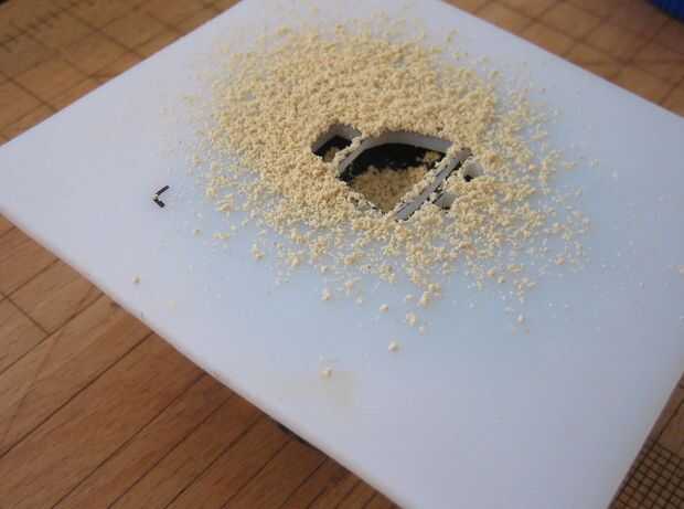 3. Polvo sobre la plantilla para aplicar el material de esténcil
