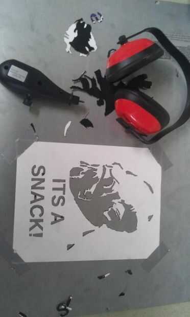 un cortador láser puede utilizarse convenientemente para cortar directamente las plantillas en prácticamente cualquier cinta o cinta de enmascarar. Esta cinta luego puede ser pegada a su superficie, pintado a pistola y quitado. Usé esta plantilla par