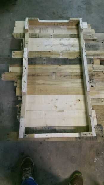 Siga las dimensiones indicadas para cortar los rieles en un rectángulo de 2 x 4'; Ensamble con tornillos y pegamento.