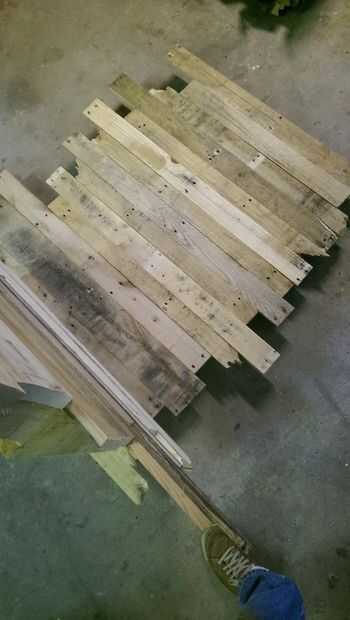 Eligió solamente alisar los bordes de los listones en la Sierra de mesa y comenzó a clavar/pegamento los tableros juntos. Pegué dos tablillas en las barandillas y los listones a los listones. Traté de elegir la mejor parte los tableros en el centro del tablero. Utilice el mayor 5 o 6" para que sea el agujero. Simplemente mida 9" hacia abajo desde uno de los extremos y centro de los tableros más grandes alrededor de eso. Como se ve en las fotos. Esto le permitirá cortar un agujero y mantener cierta integridad alrededor del agujero.
