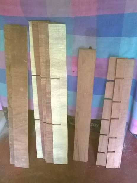 Yo planeaba tener dos lados verticales y superior e inferior de dos piezas internas del dispositivo de seguridad junto con 2 repisas horizontales con 5 estantes de enclavamiento internos.