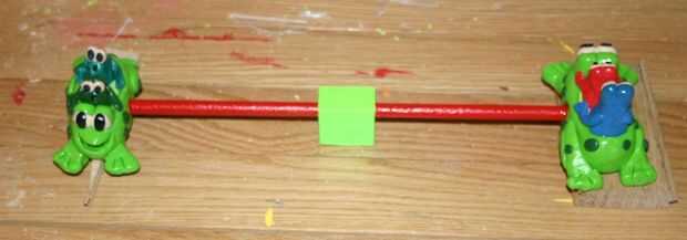 Pintó la varilla de madera mientras se hornean las ranas, entonces ella puso un final claro en las ranas. Había pegado a las ranas a la barra y deje descansar durante la noche.