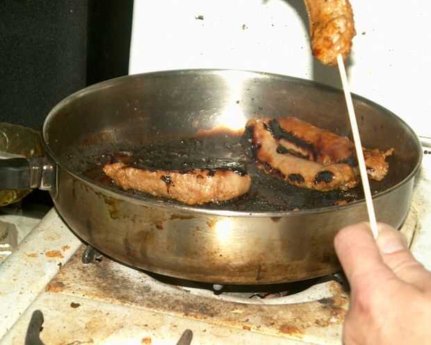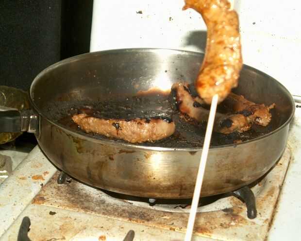 Tome cada uno y conducir un pincho a través de los bocadillos de carne twisty.
