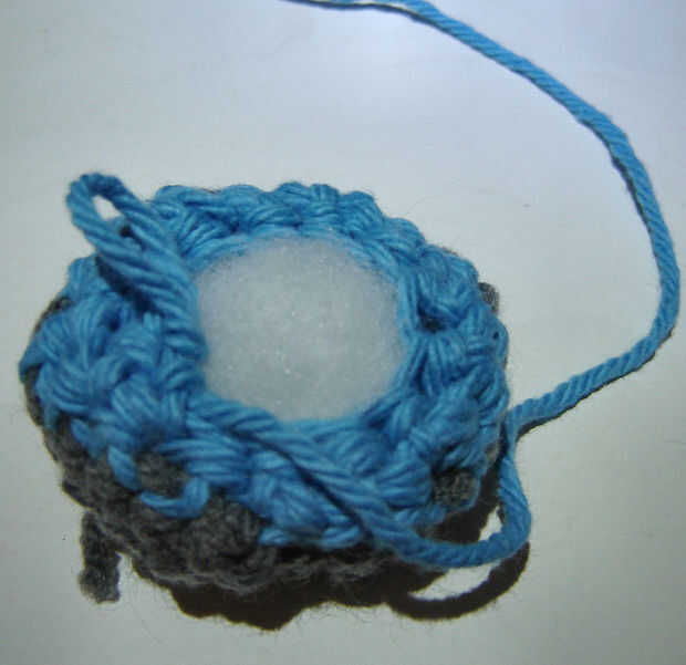 R7: (con nuevo color) SC en el siguiente 2, sc2tog en st siguiente; repetir (18)