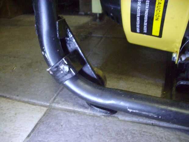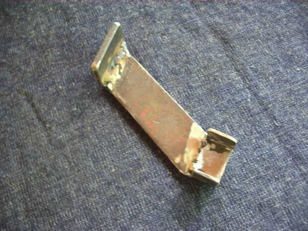 Tomé un trozo de barra plana de hierro, bastante robusta, y la corté en dos trozos de manera pudieran ser agarrados con tornillos al esqueleto del aparato. Para fijarlas en un lugar con respecto a este, y teniendo en cuenta el peso además donde, soldé una gruesa pestaña sobre la cual descansará el aparato, y otras dos no tan gruesas para mantener los soportes en una posición fija.