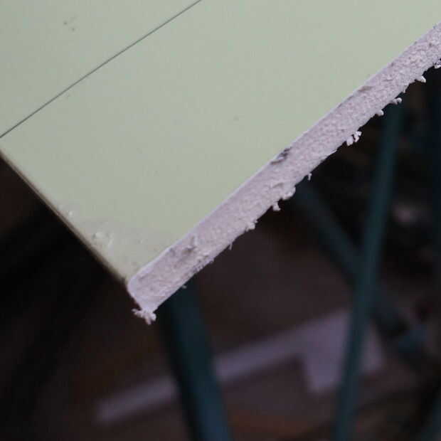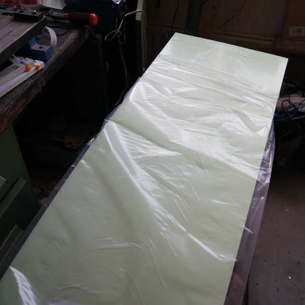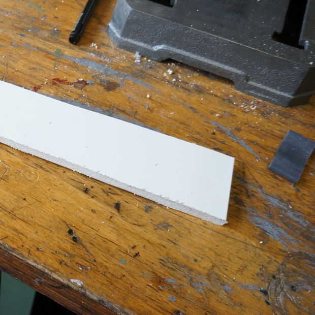 Comencé cortando una tira de material de la Junta sólo un poco más ancha que el agujero Sierra que voy a utilizar.