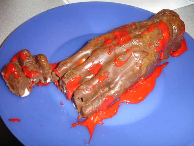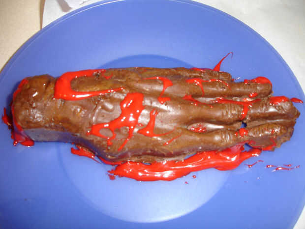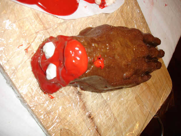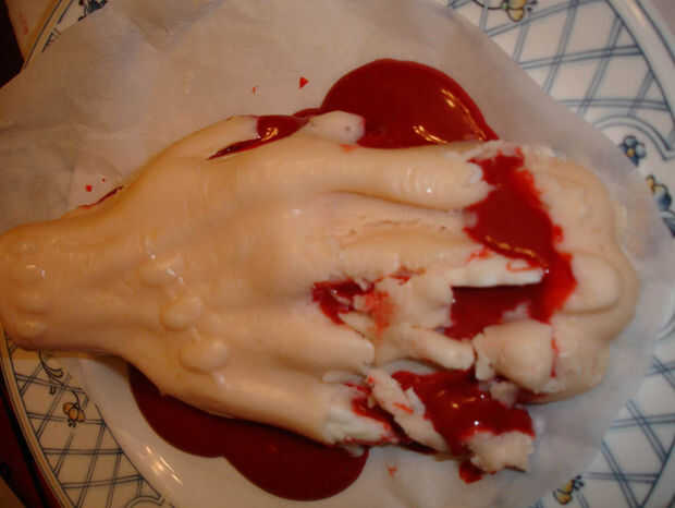 Partes mangled de la mano pueden ser reparadas por remodelación el fudge con la mano o el uso de la sangre extra para cubrir las lágrimas en el fudge. Sangre adicional alrededor de la placa para el efecto añadido de la cuchara.
