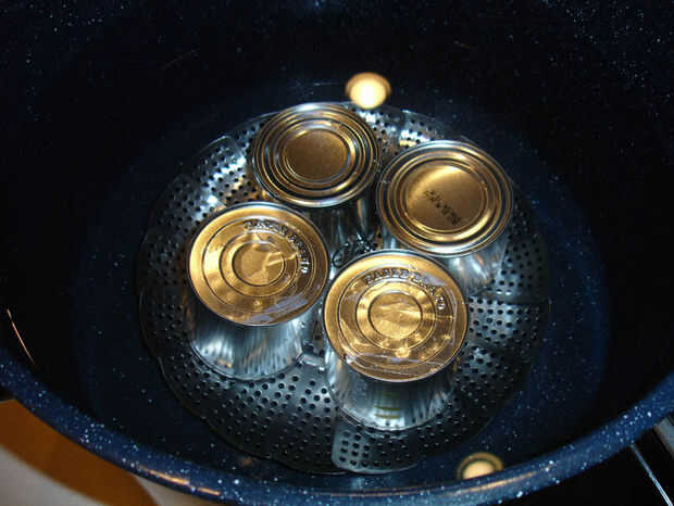 Consejo: Si tu olla es profundo lo suficiente, poner una cesta de vapor en la parte inferior primero y luego colocar sus latas en la parte superior. Esto ayudará a evitar piezas de dulce de leche de la quema dentro de la can debido a la conducción con el fondo de la olla.