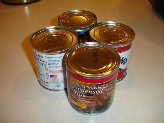 Poner las latas en el bote más alto usted puede encontrar y llenar con agua. Si usted bote es muy grande o difícil de llevar cuando está lleno, te recomiendo poner en la estufa y luego usar una jarra con agua caliente del grifo para llenarlo. Tapa y hierva, parte posterior comprobación periódicamente para asegurarse de que el nivel del agua se mantiene por lo menos una pulgada por encima de la parte superior de las latas. Más hervir las latas, el más grueso será el dulce de leche. Para la sangre, necesitamos un poco más fino, así que debe estar bien 4-5 horas. Cuidadosamente use pinzas u otra cosa para sacarlos fuera del agua. Opcionalmente, puede utilizar dulce espeso de leche en el chocolate, si quieres hacer esto, Recomendamos cocinarla durante 8 horas conseguir buena y gruesa.
