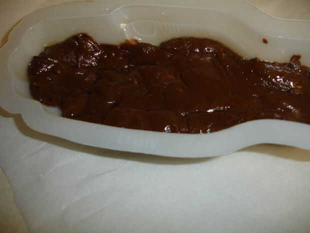 Esta capa dentro de su molde pesadamente con aerosol antiadherente. Preste especial atención a los dedos, es donde ocurre la mayoría de los problemas con el fudge atascarse.