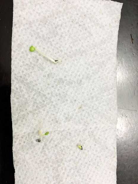 Las semillas en la foto son los tomates y sólo tardó 2 días para que puedan germinar. Ahora, necesitan ser trasplantadas en tierra para seguir creciendo en las plántulas (también para evitar el decaimiento).