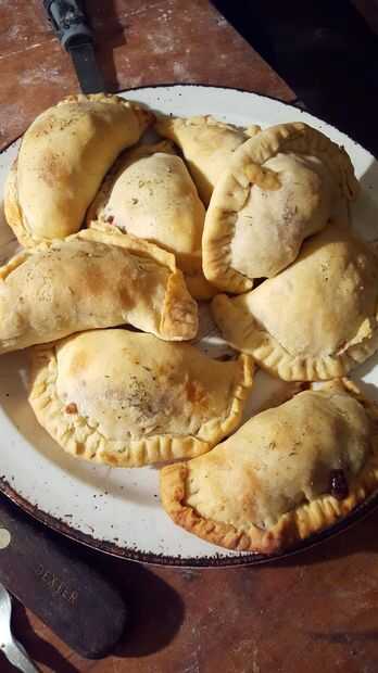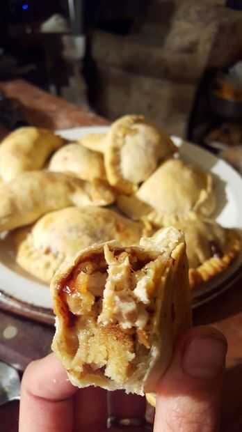 Con agradecimiento sobra ingredientes como relleno, pavo, taters, arándanos y salsa; llenar tus círculos y cerrarlos con el otro lado. Se desea utilizar como 1-2 cucharadas de relleno para el pequeño tamaño de la imagen. Puede usar unas gotas de agua para que el palo de cada lado. Doblar cada lado y un tenedor para sellar la masa. Para asegurar que la masa mantiene forma, pop cada empanada rellena en el congelador durante unos minutos antes de hornear. Hornee a 350 grados hasta que estén doradas. Unte con mantequilla derretida y decorar con hierbas. mejor manera de utilizar las sobras de acción de gracias siempre!
