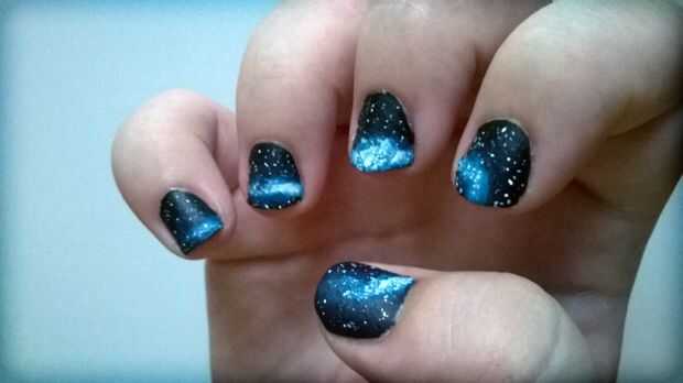 Con blanco puro y su cepillo de punta (extremo de palillo/blunt de una aguja de las obras así) dap la punta sobre la uña ligeramente posible añadir cantidades minuciosas de blanco. Estos puntos se asemejan a estrellas y más añade más translúcida la galaxia será por lo tanto lo que parece está flotando en el espacio profundo. Añadiendo el blanco más puro en el centro de la galaxia ayuda a traer a la vida.