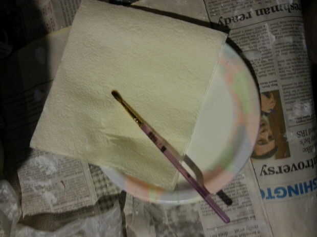 Por último, un básico pincel, algo para limpiar exceso de pintura en y algo para mezclar colores en.