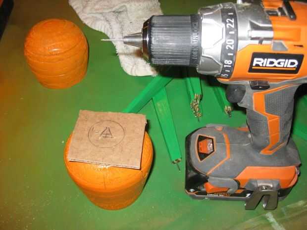 hice un esquema rápido del agujero de la plantilla de cartón y perforado los agujeros con un clavo afilado porque no pude encontrar una broca de tamaño adecuado.